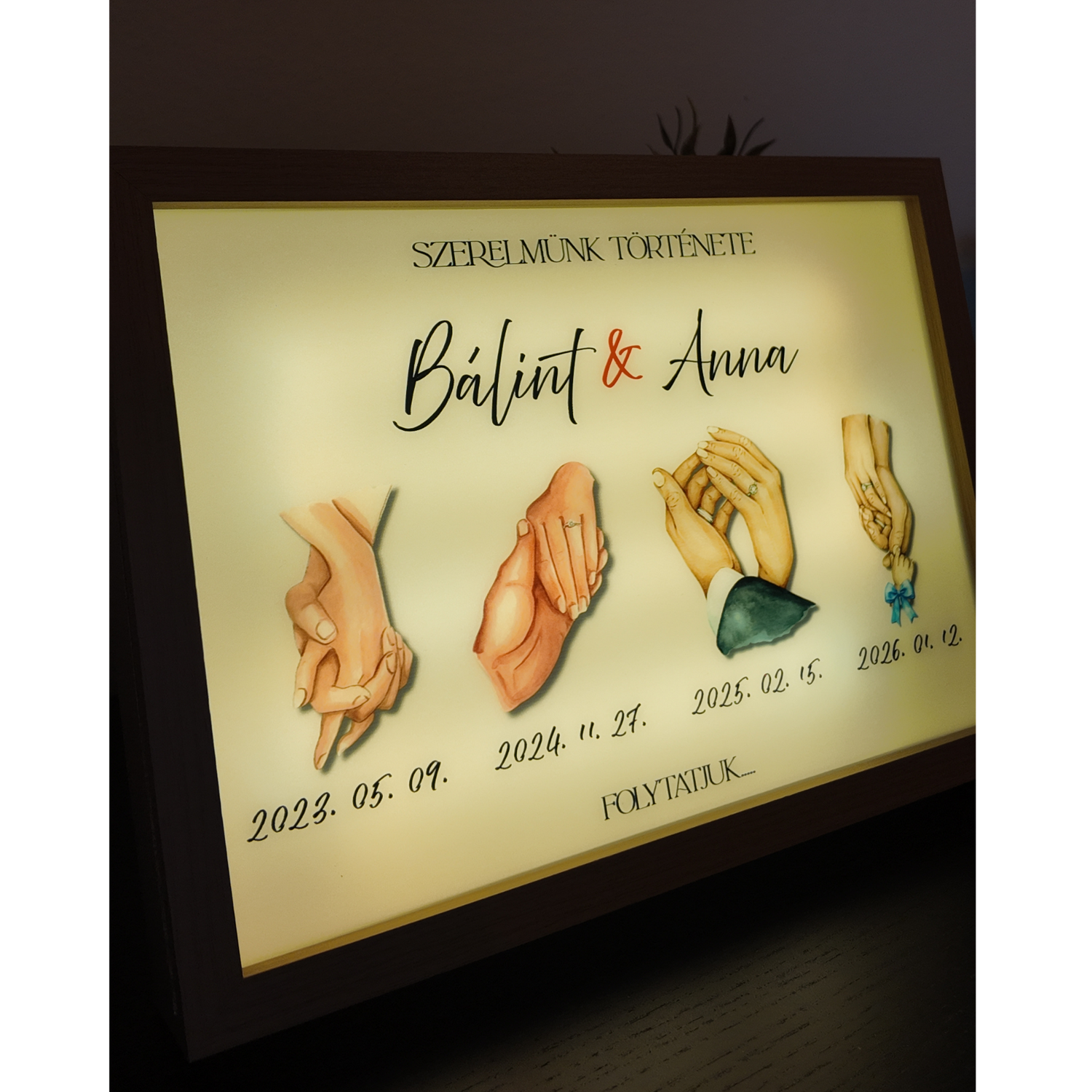 Azóta is minden este felkapcsoljuk. Olyan érzés, mintha újra átélnénk a közös pillanatainkat. Nagyon különleges ajándék lett.