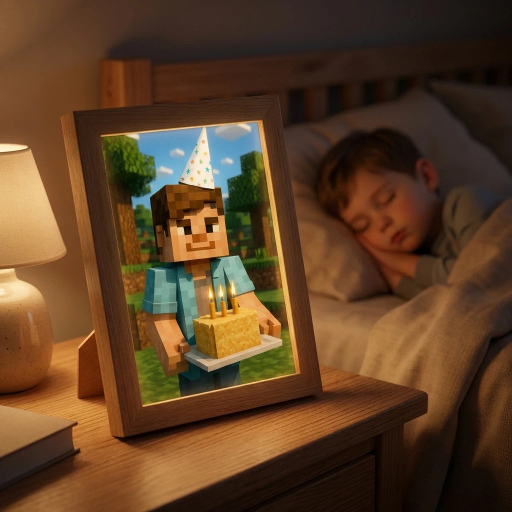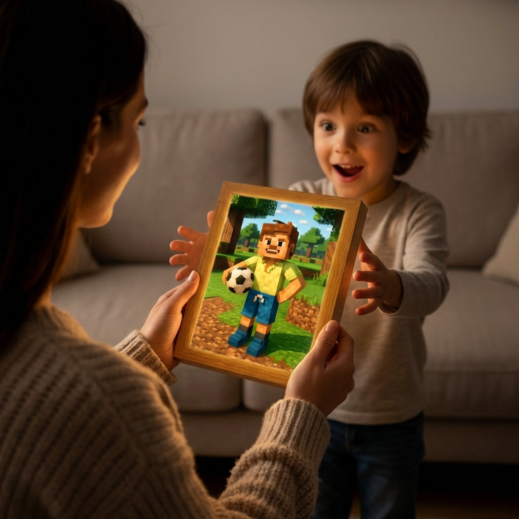 A fiamnak a Minecraft a kedvenc játéka. Amikor meglátta, hogy Ő is egy pixel karakter lett. annyira megörült neki. Ilyen boldognak még nem láttam egy ajándék miatt.